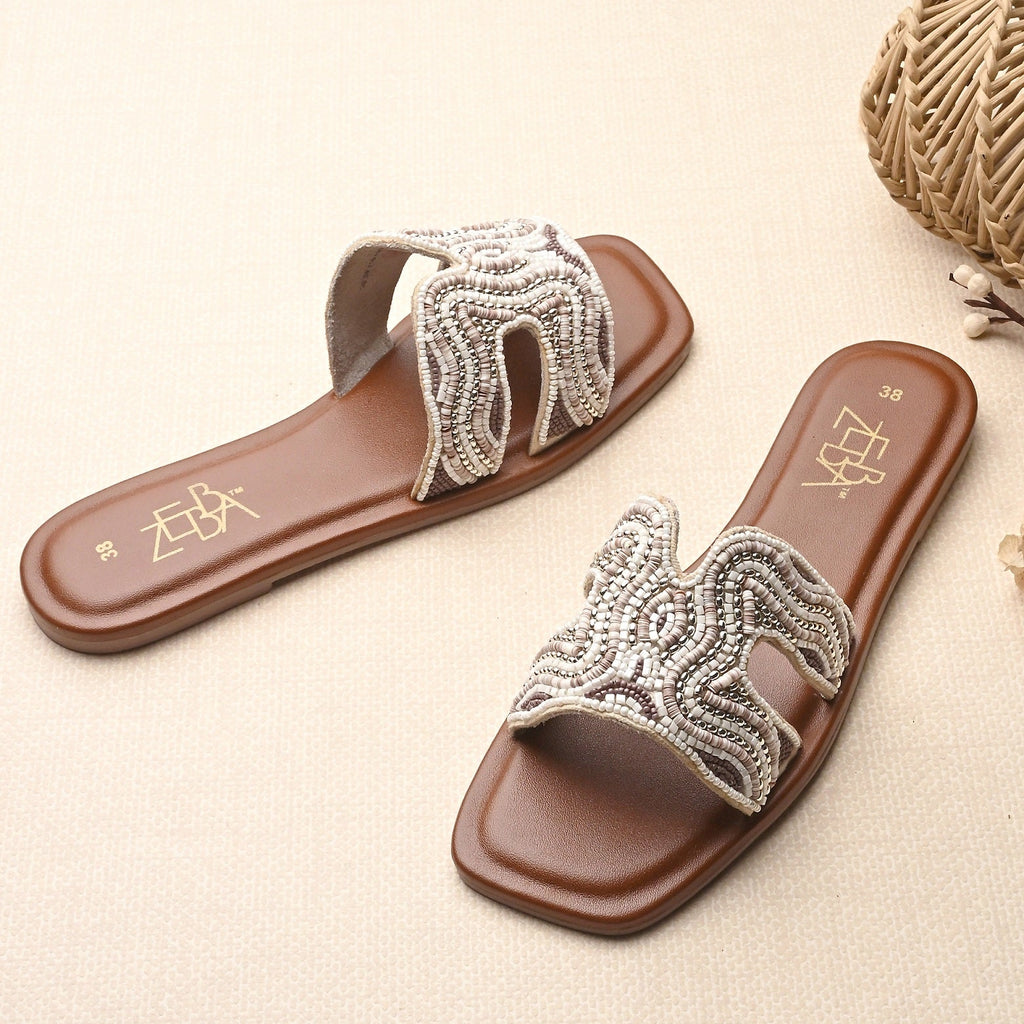 Elevate your footwear game with these stylish brown sandals.Featuring intricate silver embroidery and a comfy design, they're perfect for casual outings.The unique blend of traditional craftsmanship and modern flair makes them a standout!!