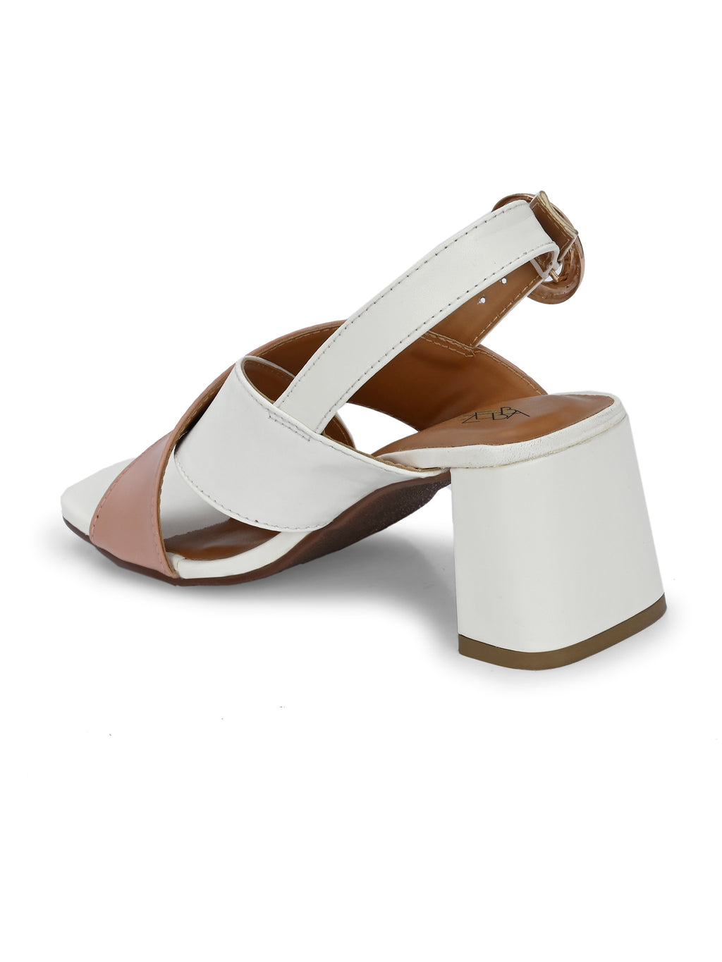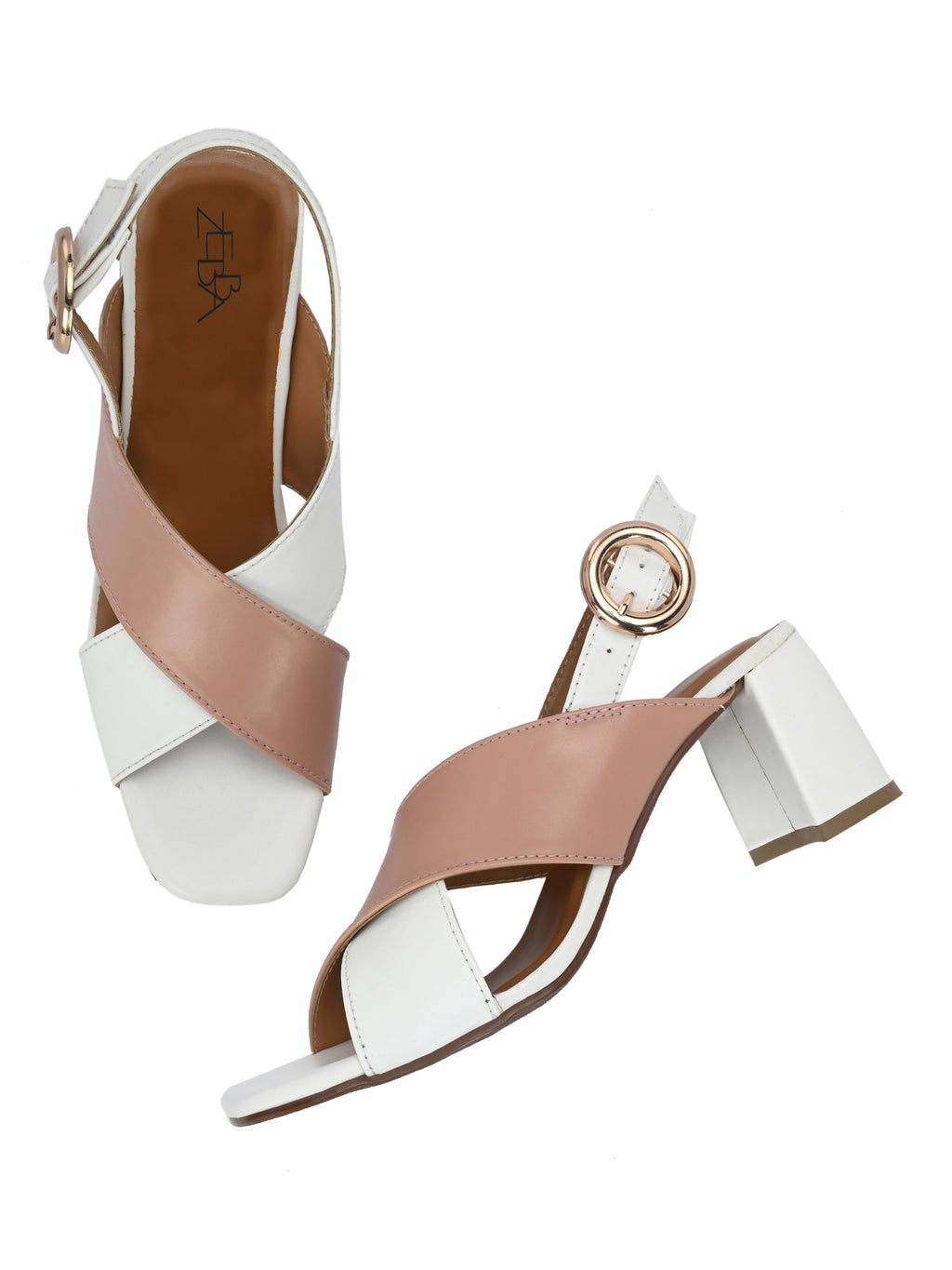 A Beautiful Contrast of Pink and off-white straps creates a fresh , versatile look that complements various Looks. These heels are Crafted for women who values both style and stability.
