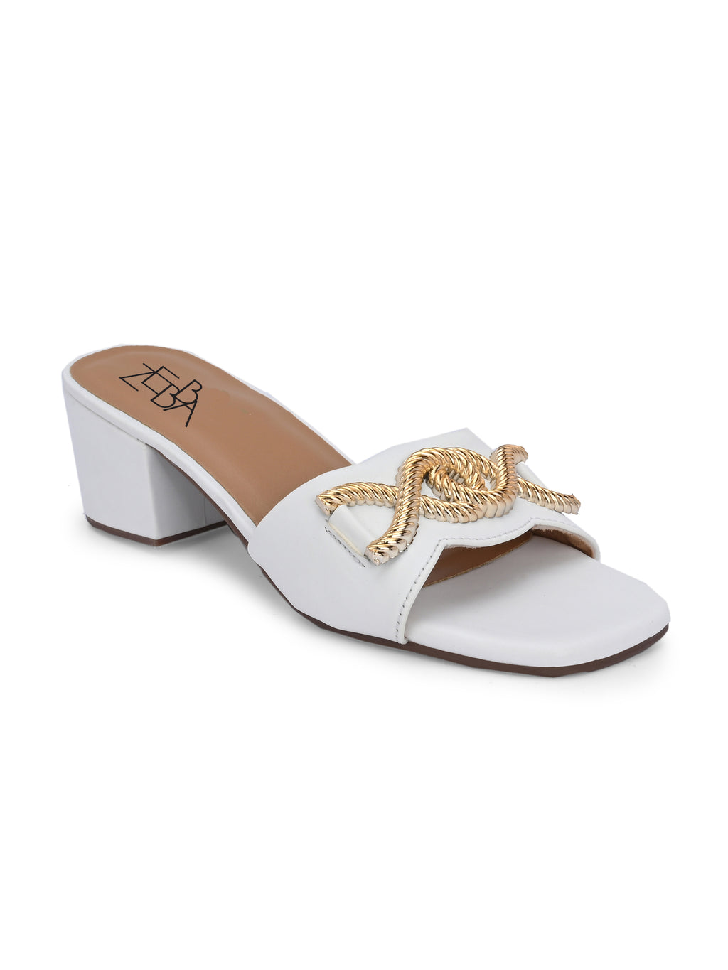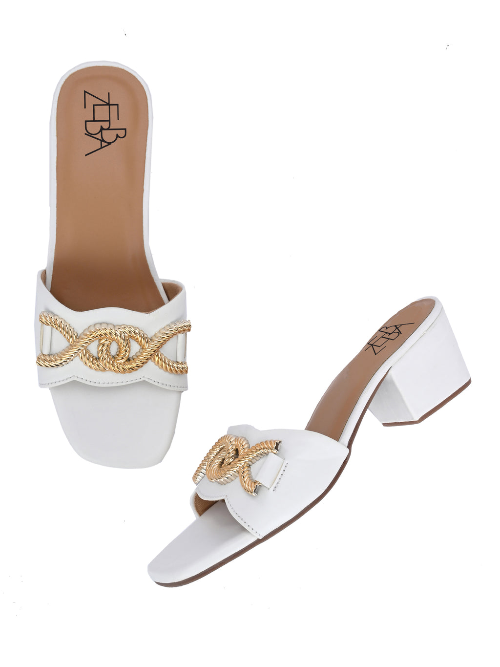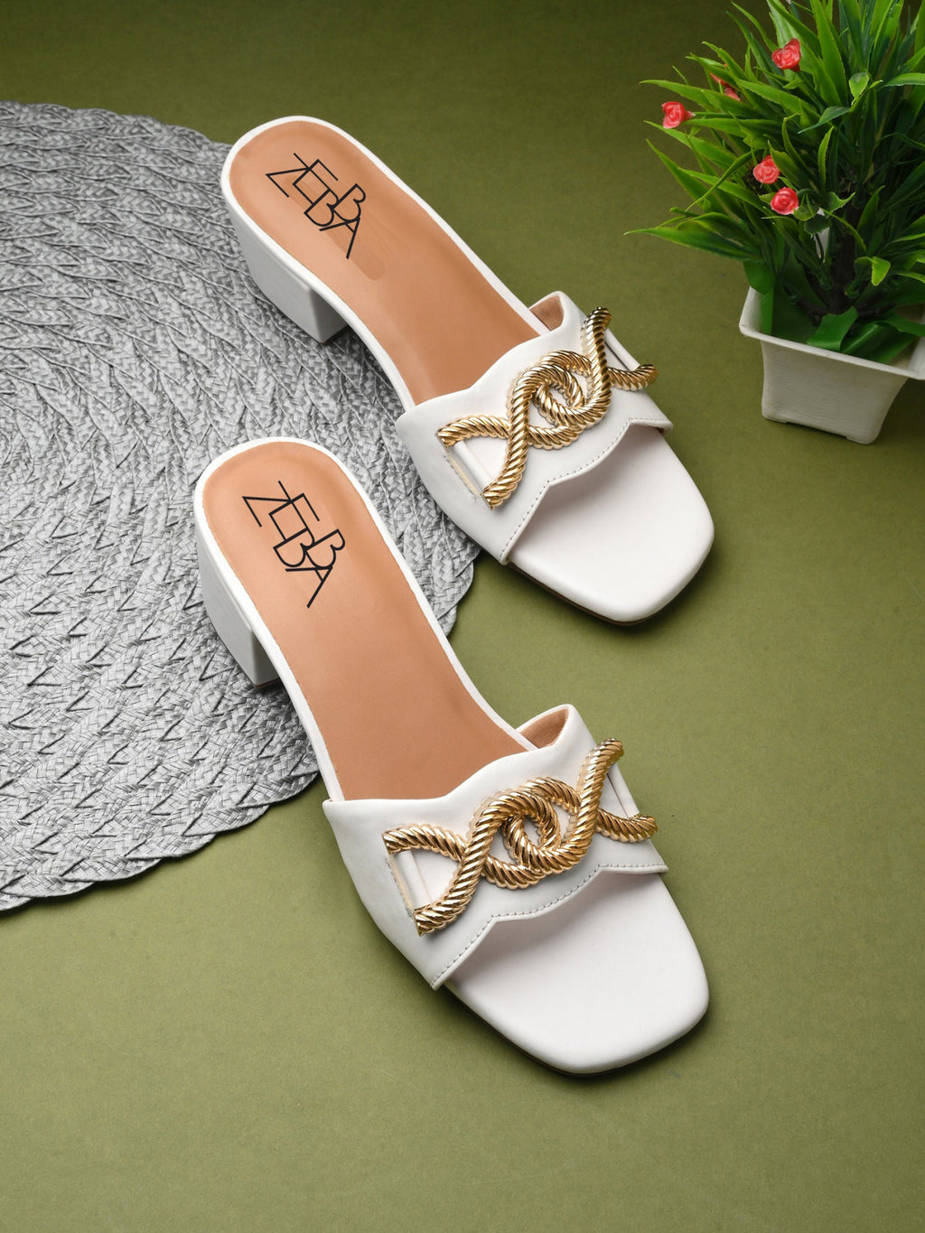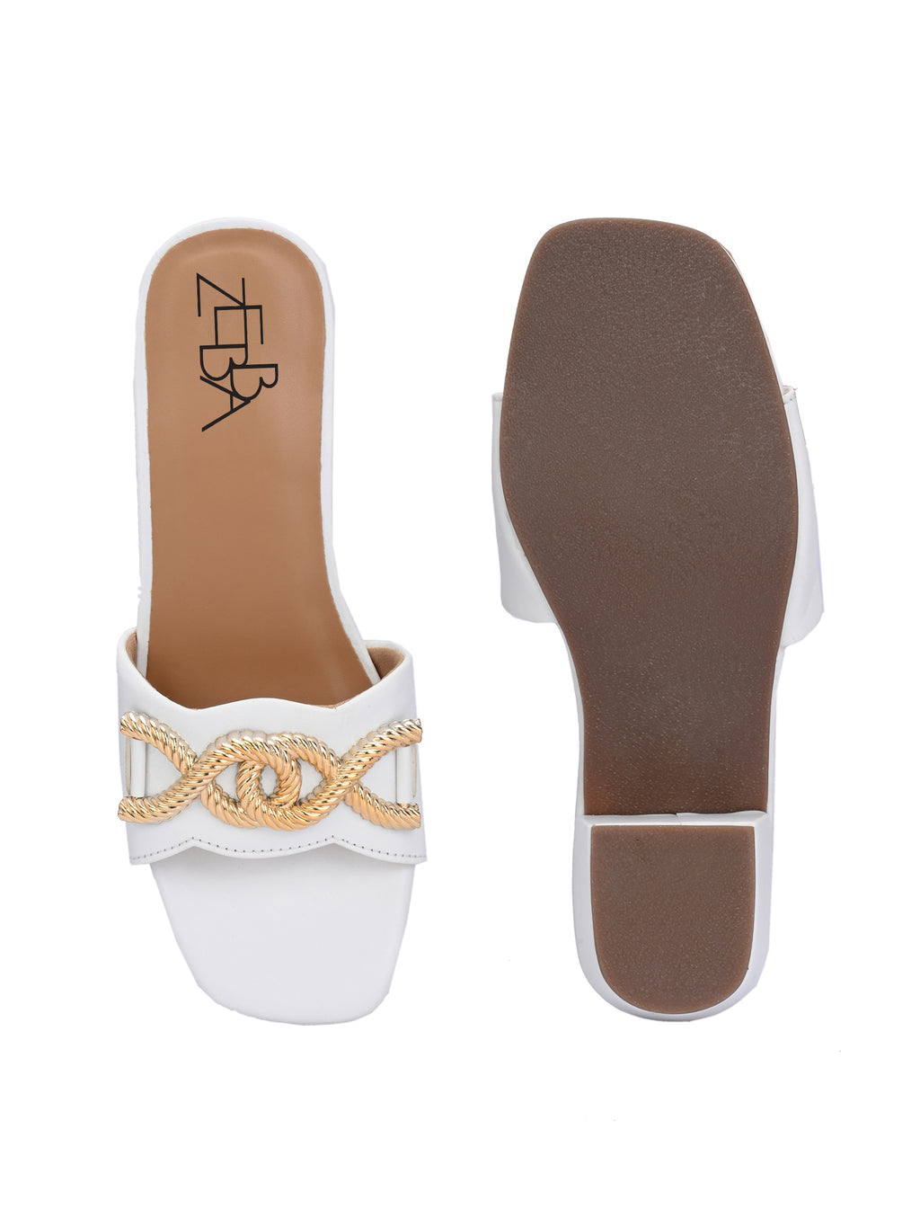 A modern square toeand eye catching gold chain embelishment, they offer both comfort and chic apeal. ensembles