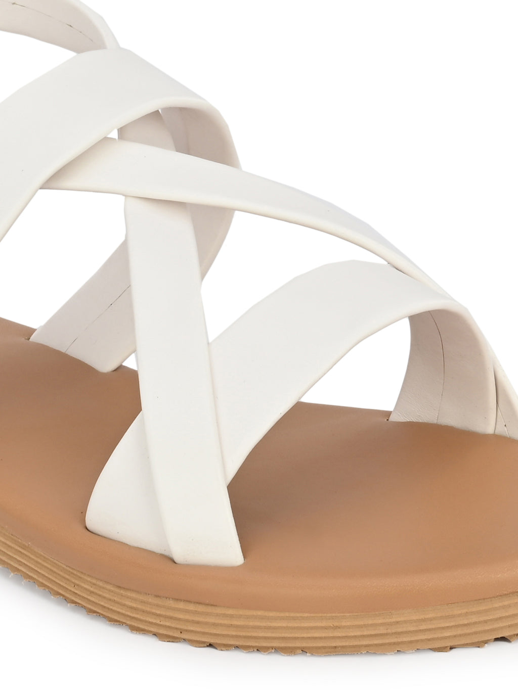 Step into Our effortless summer style with our Chic Crisscoss Comfort Sandals. Designed for all -day wear, these sandals feature white vegan leather adjustable strap.Perfect for Beach/Resort Looks